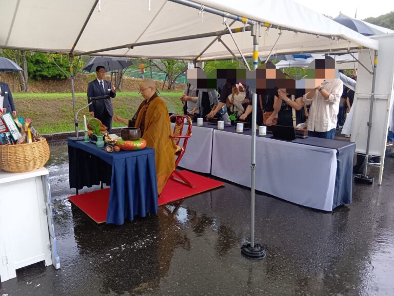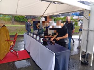 一時、あいにくの雨模様となりましたが、次第に雨も上がり無事に法要を営むことができました。早朝より多くの方々にお参りいただき、しとやかな雨の中にも温かな祈りが広がり、会場全体がやさしい想いに包まれておりました。かわいがってこられた大切なご家族を偲び、変わらぬお気持ちを寄せてくださる皆さまのお力添えによって、この法要を重ねてこられましたことを、心より厚く御礼申し上げます。