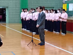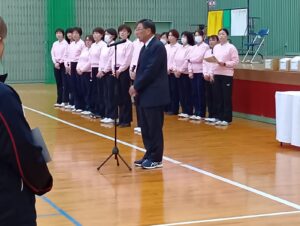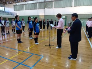 開会式では、鳥取市バレーボール協会の岡田信俊会長、鳥取県東部式典事業協同組合の光浪房夫理事長から挨拶がありました。また、人気企画「ミニバレー教室」も開かれ、元バレーボール日本代表選手の米山裕太さんと一緒に、ウォーミングアップをしたり、スパイクを披露してくださったりと、とても楽しい時間を過ごさせていただきました。