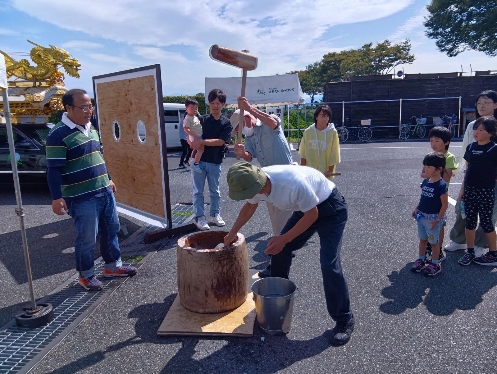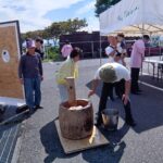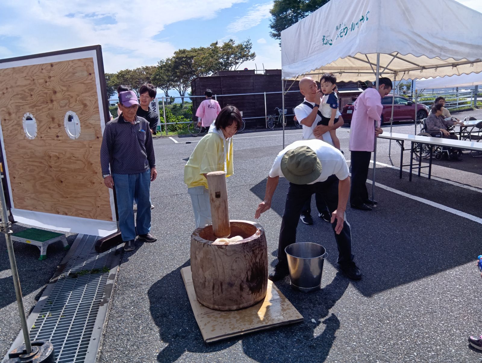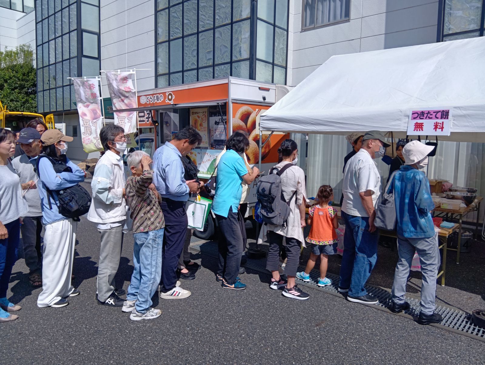 光心クラブ提携店様にも出店いただいた特設会場「味のお散歩屋台」では、佐治の柏会様のご協力のもと、つきたてのお餅を振舞いました。11時からつき始めるとあっという間に長蛇の列が!つきたてのお餅と各店舗自慢の味に皆さん舌鼓を打っておられました。