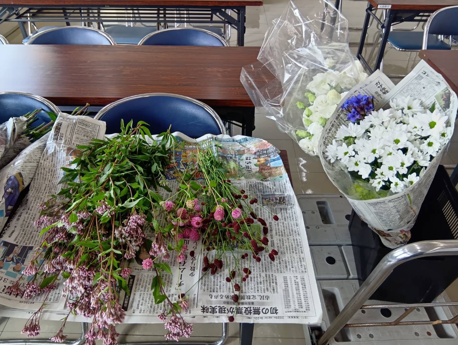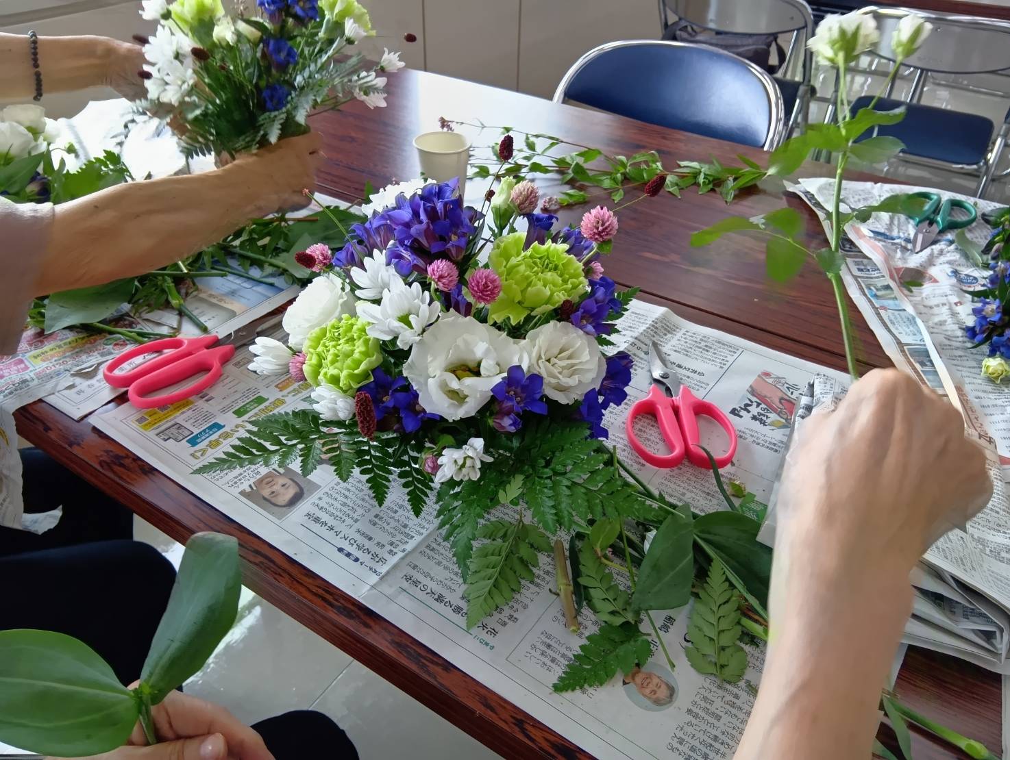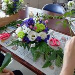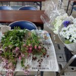 気が向いた方から順々にフラワーアレンジメントを始められ、用意した花材と、参加者の方が育てたお花を様々な形に仕上げられました。