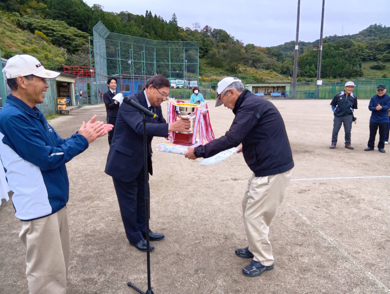 10月22日(水)佐治町大井の多目的運動広場において、第40回「メモワールイナバふれあいカップグラウンド・ゴルフ大会(主催 佐治グラウンド・ゴルフ協会・共催 ㈱メモワールイナバ)が開催されました。