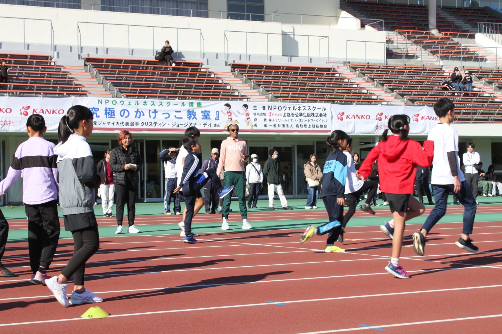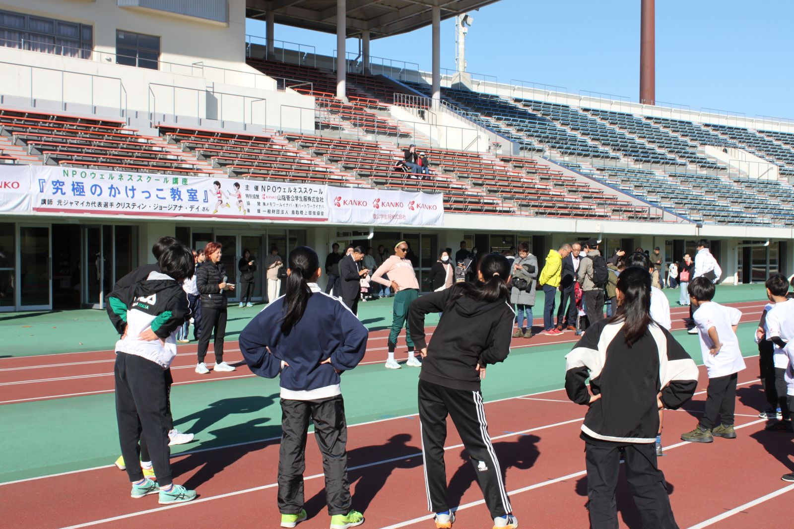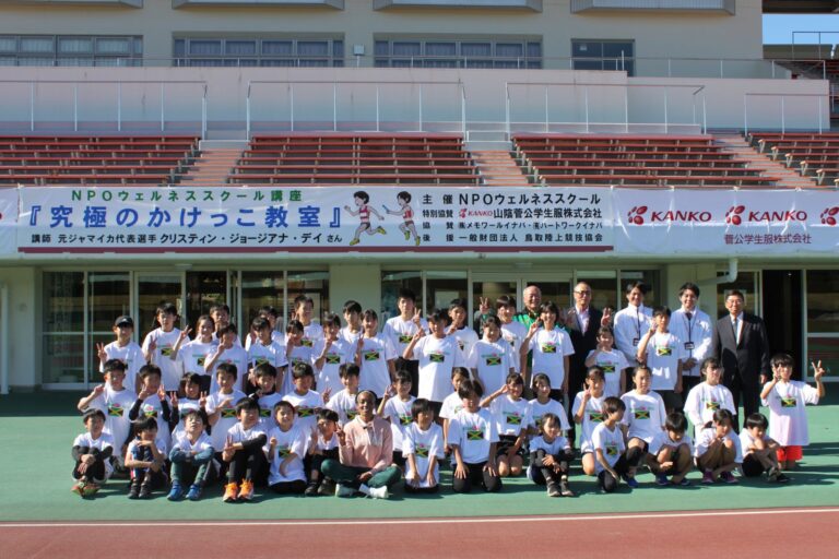 令和7年11月22日(土)ヤマタスポーツパーク陸上競技場に於いて、元ジャマイカ代表選手のクリスティン・デイさんをお招きして「かけっこ教室」を開講いたしました(主催:NPO法人ウェルネススクール(光浪房夫理事長、協賛:山陰菅公学生服株式会社様)。当スクールは子ども達の健全育成を目的として、スポーツを通した生き抜く力・心豊かな人間性を育むこと、そのために必要な環境づくりに努め、もって広く地域の公益に寄与することを目的としています。