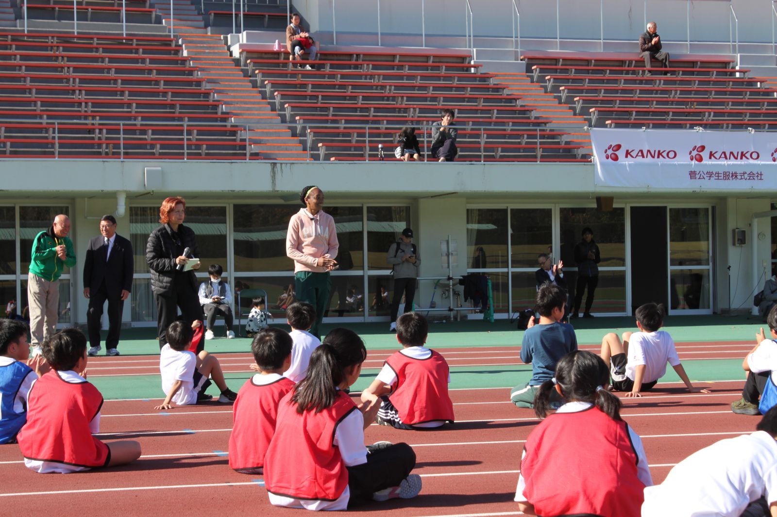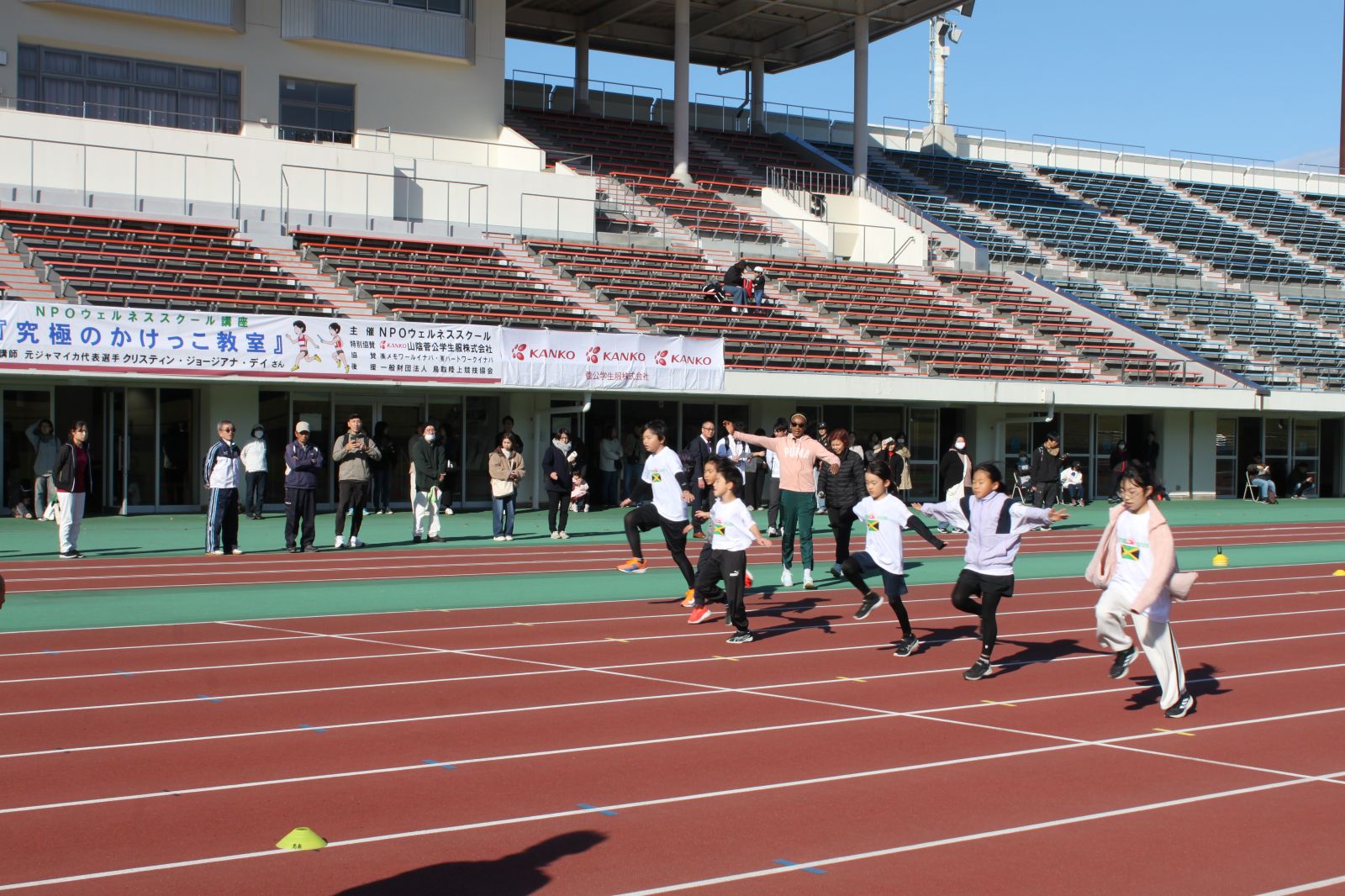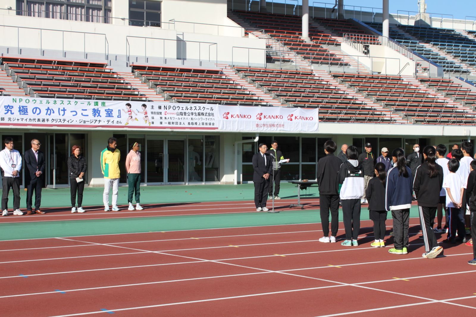 令和7年11月22日(土)ヤマタスポーツパーク陸上競技場に於いて、元ジャマイカ代表選手のクリスティン・デイさんをお招きして「かけっこ教室」を開講いたしました(主催:NPO法人ウェルネススクール(光浪房夫理事長、協賛:山陰菅公学生服株式会社様)。当スクールは子ども達の健全育成を目的として、スポーツを通した生き抜く力・心豊かな人間性を育むこと、そのために必要な環境づくりに努め、もって広く地域の公益に寄与することを目的としています。